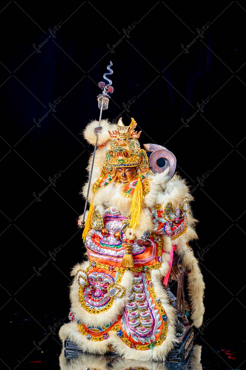 新營龍應宮**中壇元帥(或是該神尊尊號)**神像攝影,手持法器,展現精細的盔甲工藝與神韻。