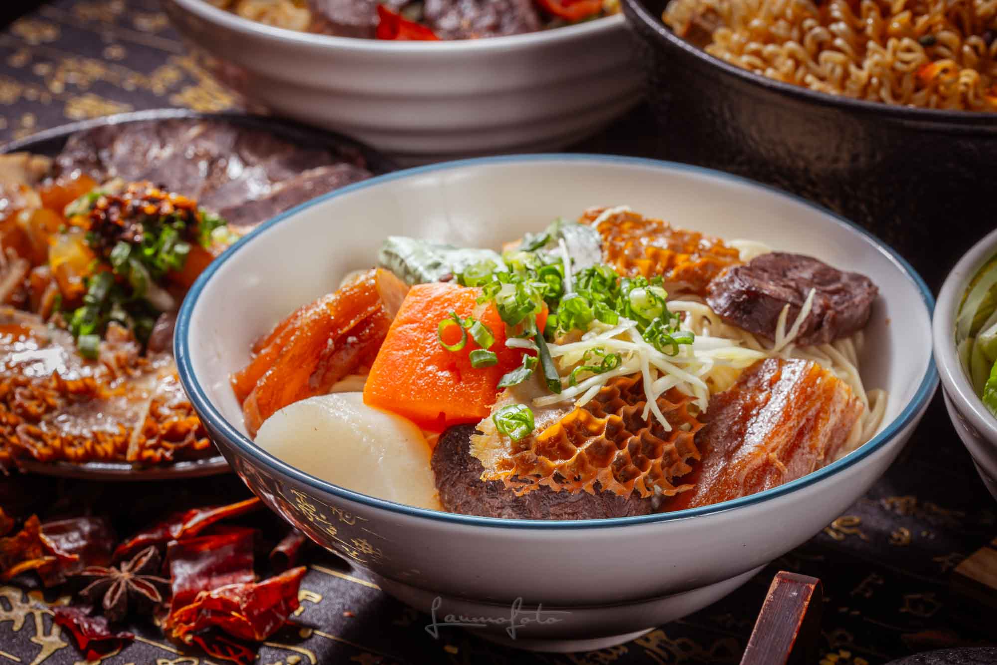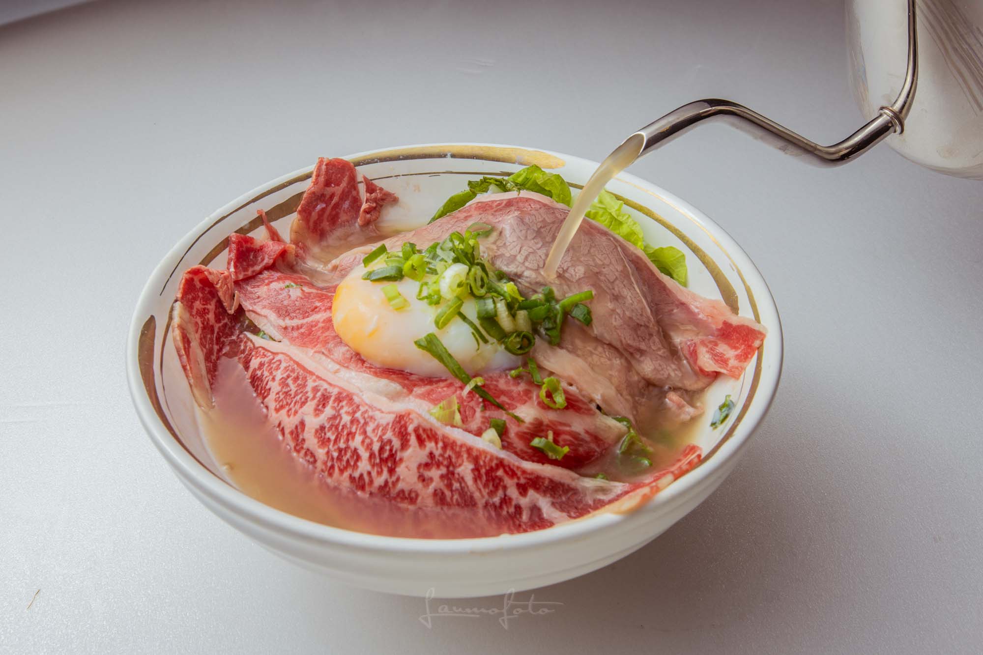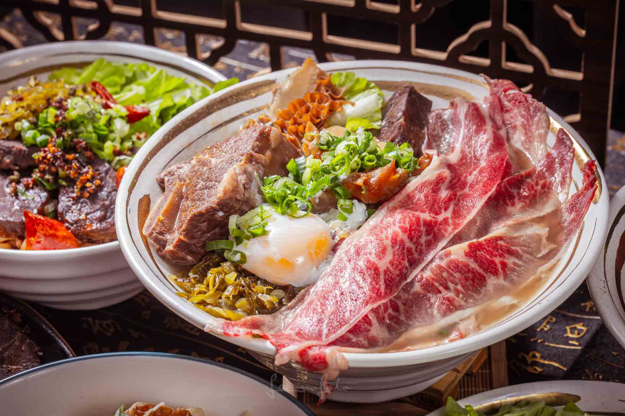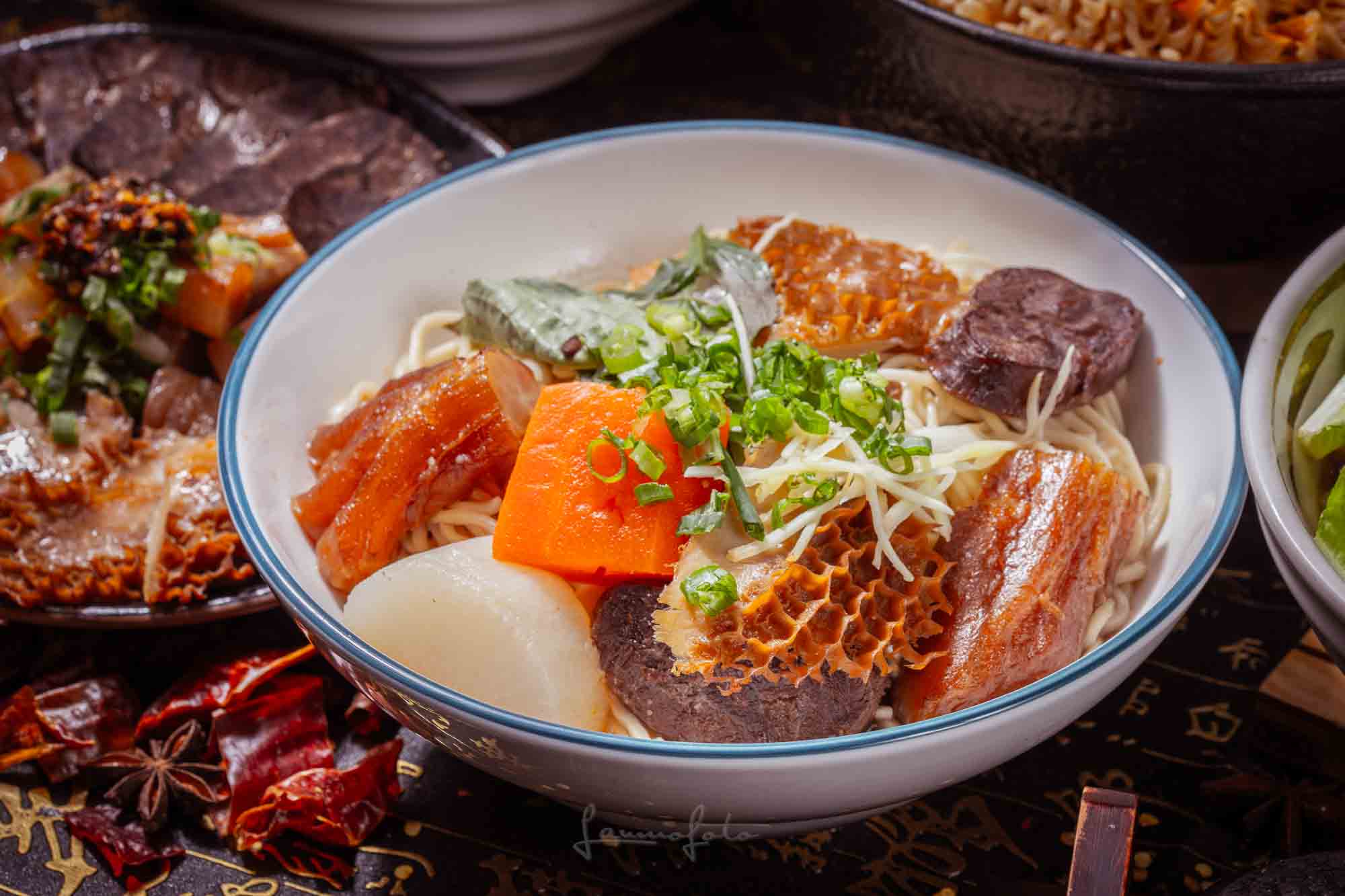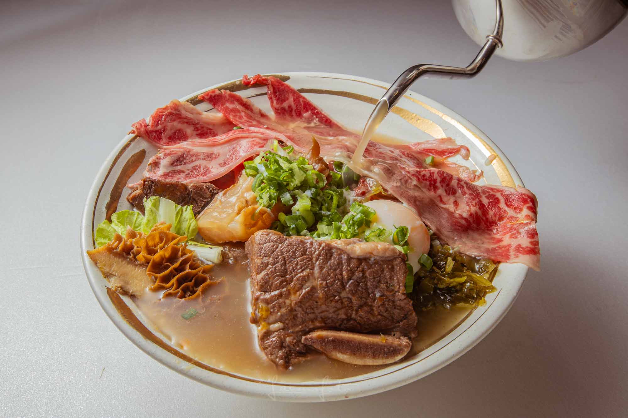 高湯沖淋生牛肉」的動態瞬間(Photo 043),直接把牛肉麵的鮮度與熱氣傳達出來了!