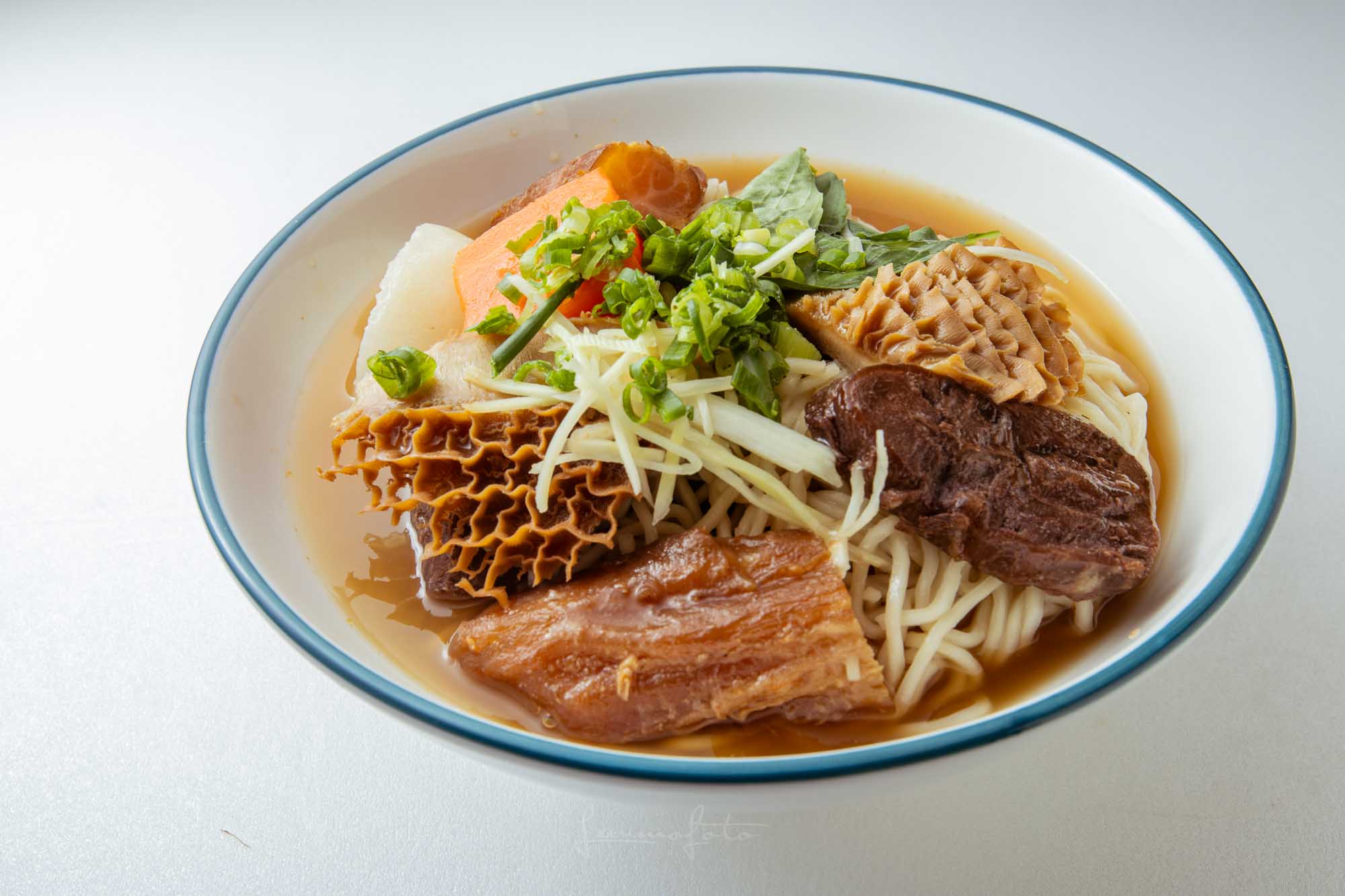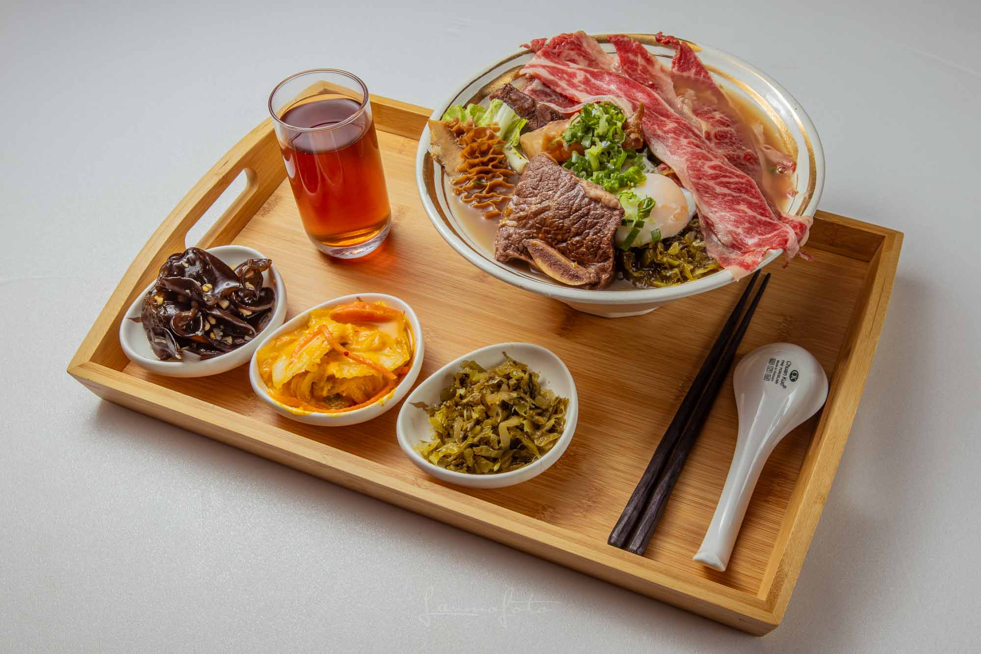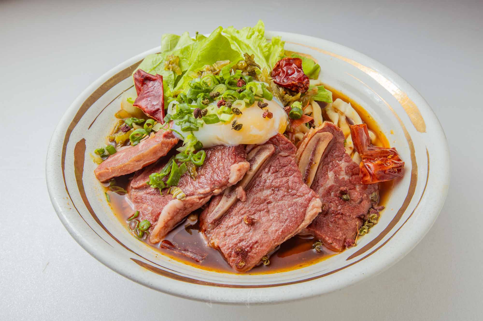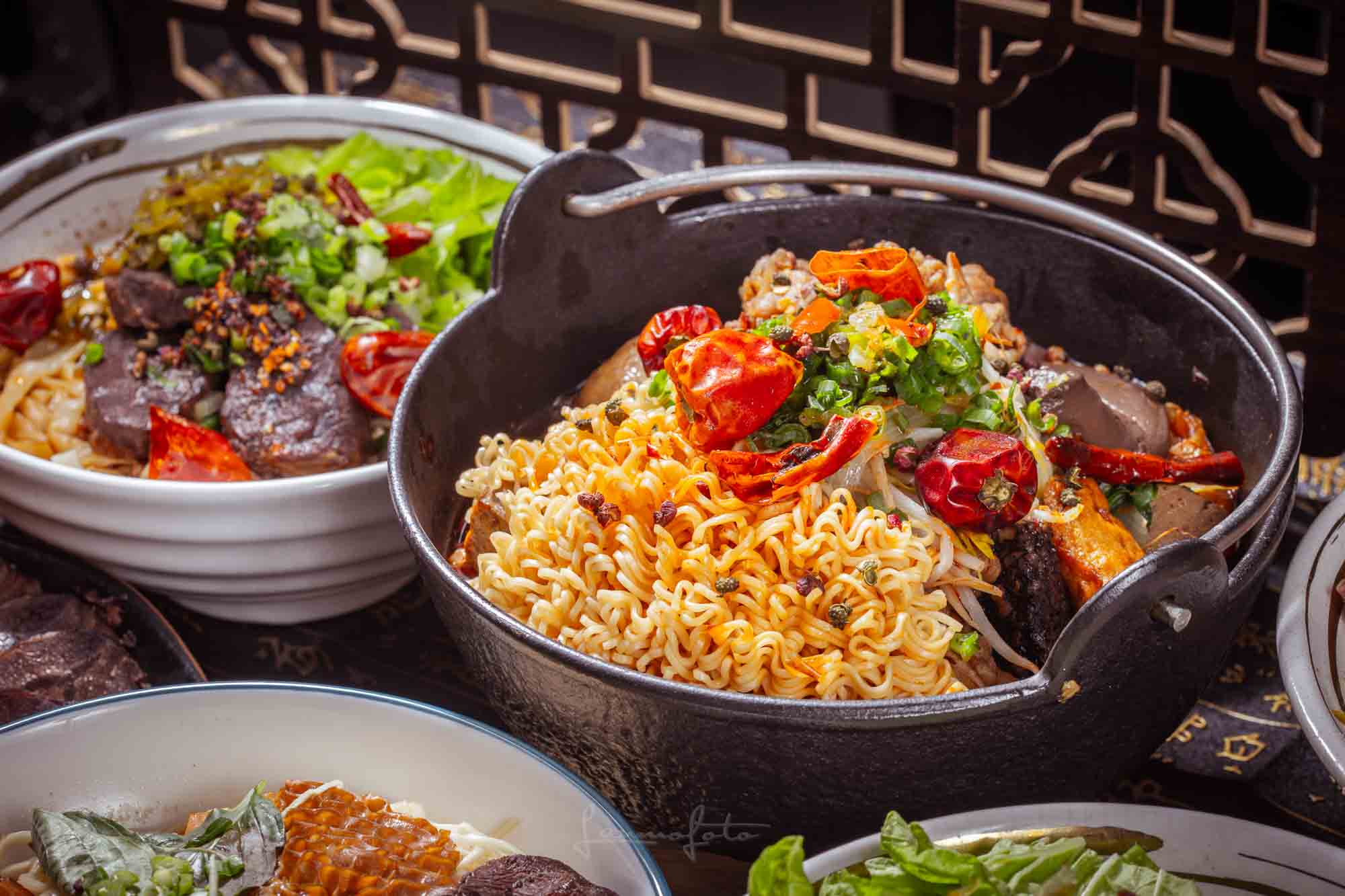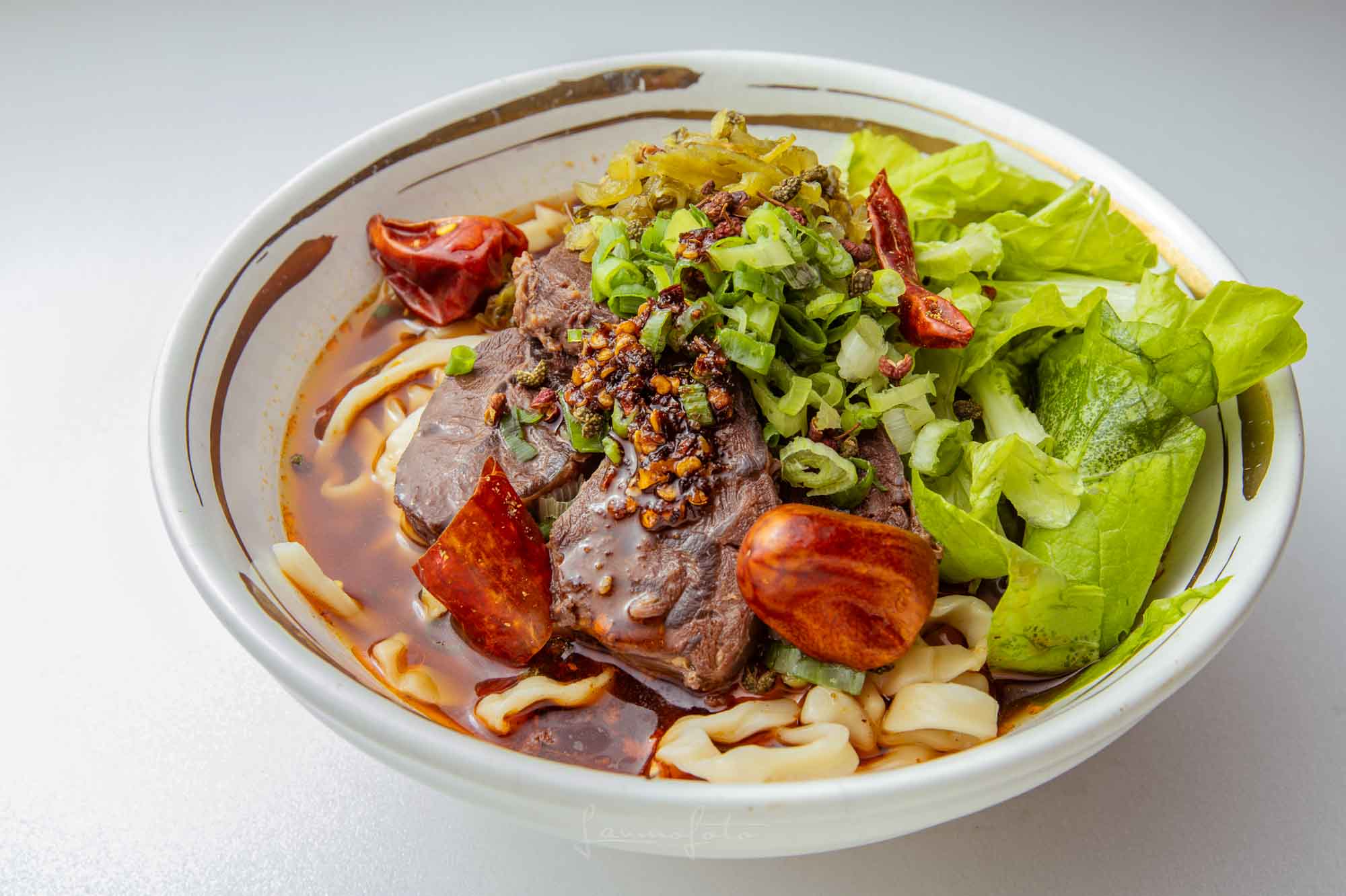 高湯沖淋生牛肉」的動態瞬間(Photo 043),直接把牛肉麵的鮮度與熱氣傳達出來了!